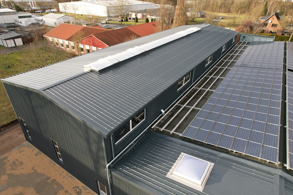 In der letzten Bauphase wird die Dachfläche mit einer Solaranlage ausgerüstet. So können wir auch in Zukunft nachhaltig nachhaltige Produkte herstellen und an unsere Kunden in der ganzen Welt versenden.